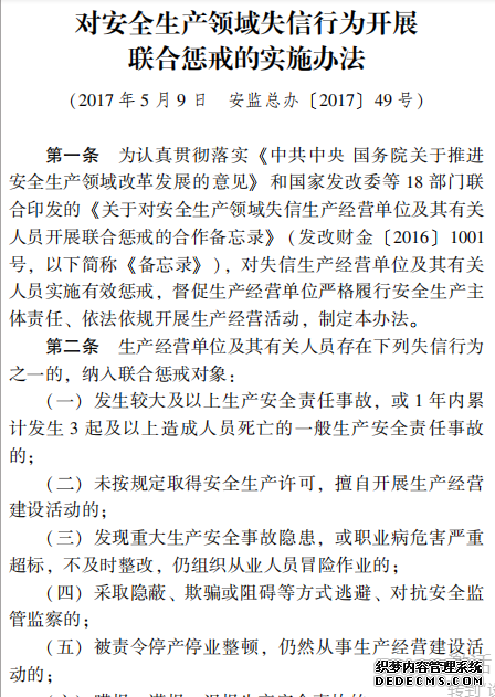 對(duì)安全生產(chǎn)領(lǐng)域失信行為開(kāi)展 聯(lián)合懲戒的實(shí)施辦