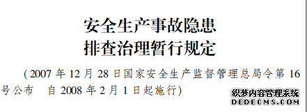 安全生產(chǎn)事故隱患 排查治理暫行規(guī)定