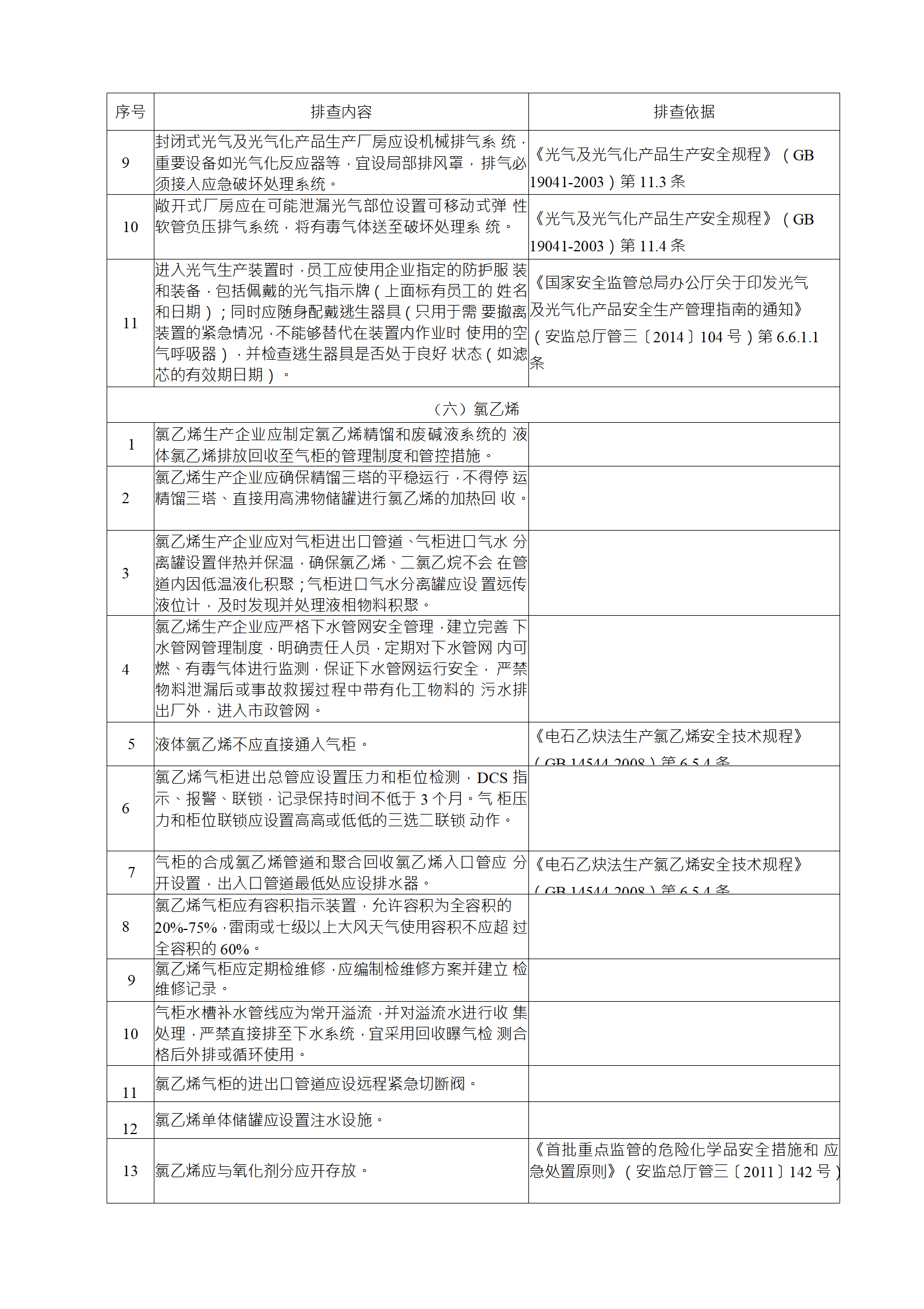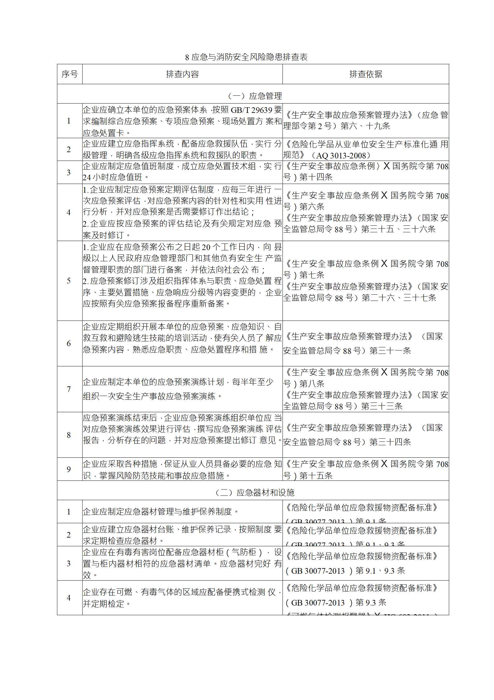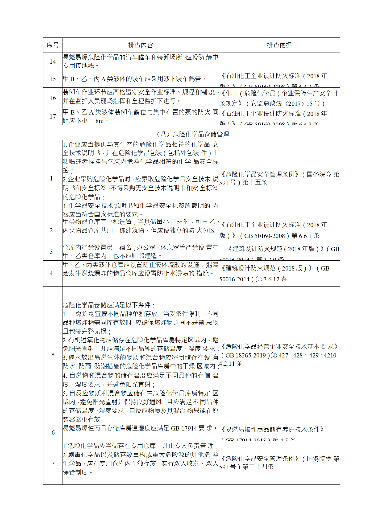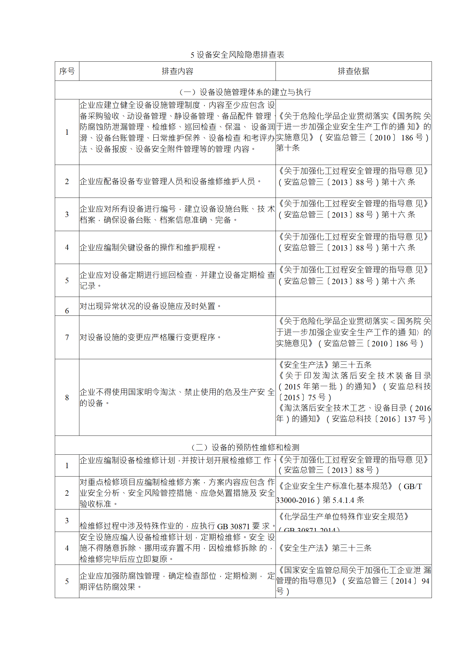 企業(yè)應(yīng)結(jié)合自身安全風(fēng)險(xiǎn)及管控水平,按照化工過(guò)程安全 管理的要求,參照各專業(yè)安全風(fēng)險(xiǎn)隱患排查表(見(jiàn)附件),編制 符合自身實(shí)際的安全風(fēng)險(xiǎn)隱患排查表,開(kāi)展安全風(fēng)險(xiǎn)隱患排查 工作。