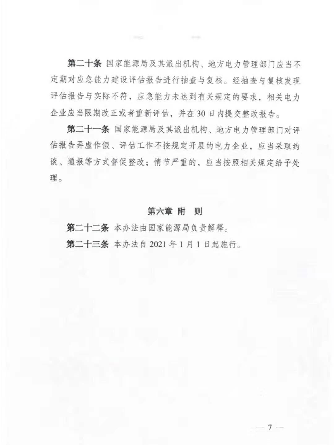 國(guó)家能源局印發(fā)《電力企業(yè)應(yīng)急能力建設(shè)評(píng)估管理辦法》