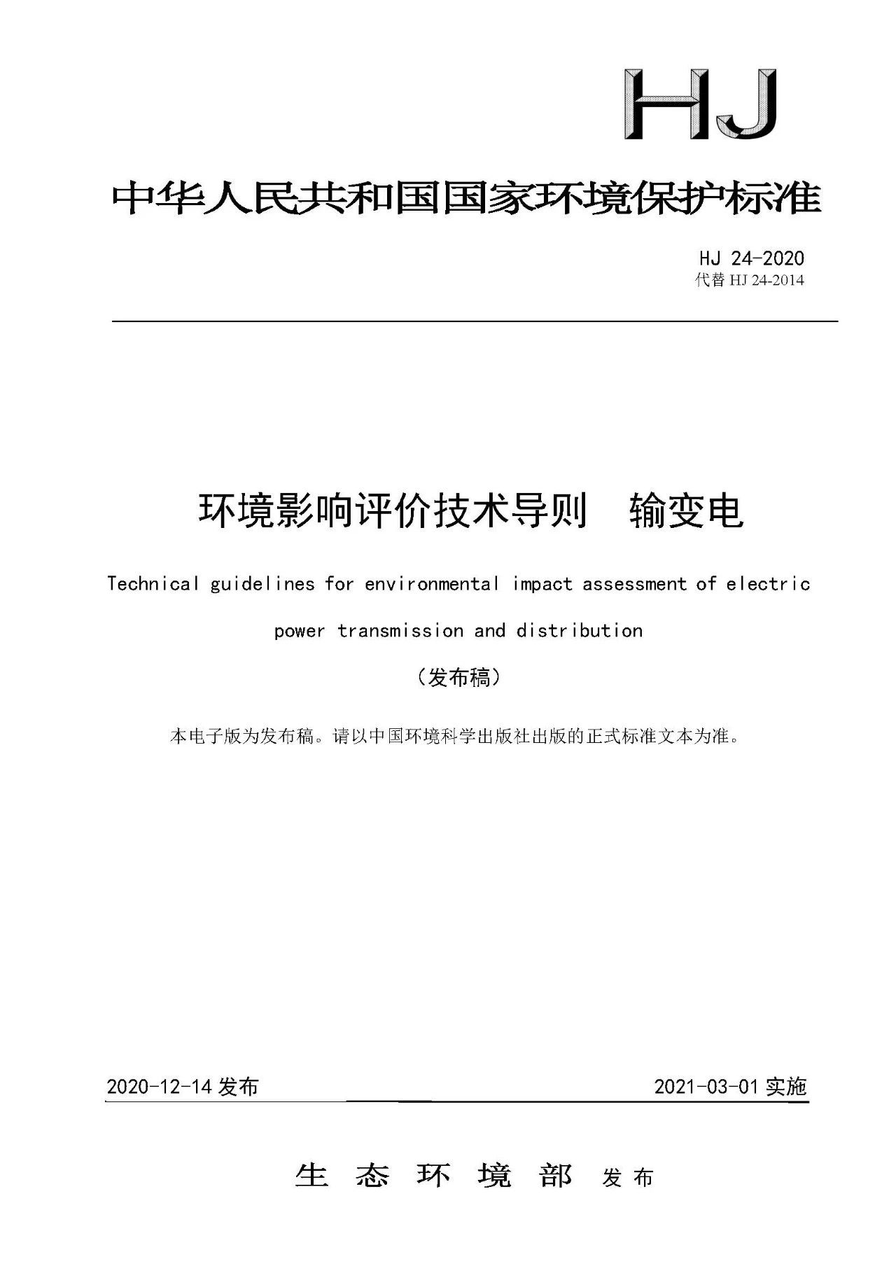 二、《環(huán)境影響評價技術導則 輸變電》(HJ 24-2020)