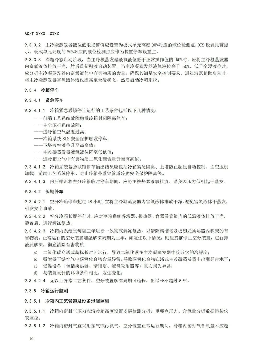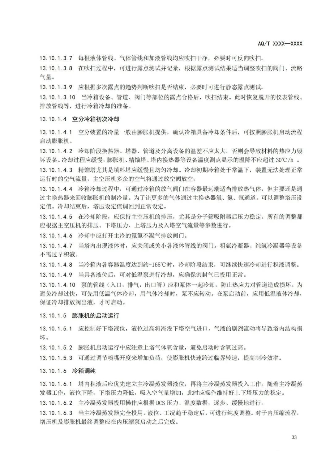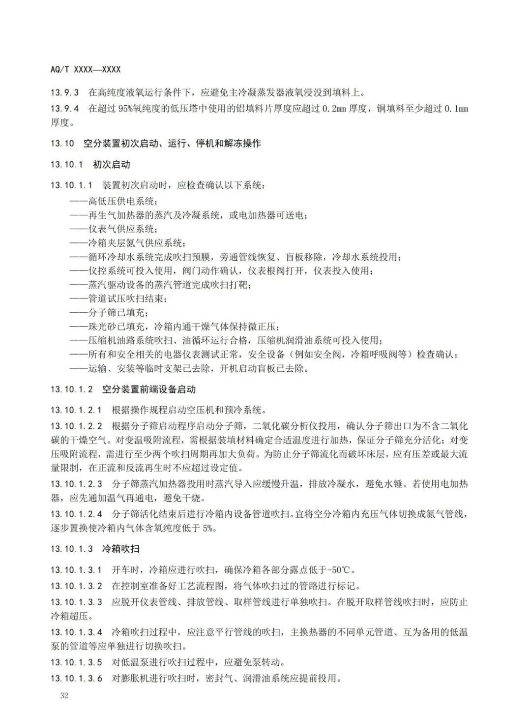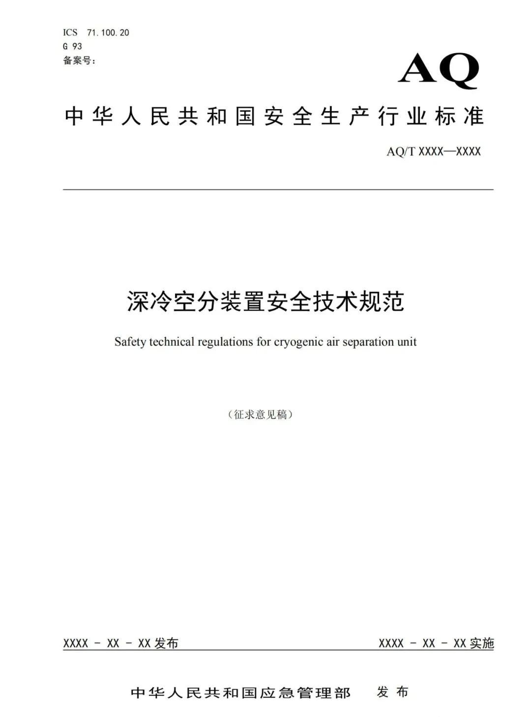 12月15日,國家應(yīng)急管理部發(fā)布了關(guān)于《深冷空分裝置安全技術(shù)規(guī)范》(征求意見稿)等兩項(xiàng)標(biāo)準(zhǔn)征求意見。此次公開征求意見時間為2020年12月10日至2021年2月10日。本標(biāo)準(zhǔn)規(guī)定了深冷空分裝置的總體布局、吸入空氣質(zhì)量控制、壓縮機(jī)、膨脹機(jī)、低溫泵、空分冷箱和精餾系統(tǒng)、產(chǎn)品儲運(yùn)、稀有氣體裝置、控制系統(tǒng)、安全操作運(yùn)行、人員管理與事故應(yīng)急處置等內(nèi)容的要求。本標(biāo)準(zhǔn)適用于以冶金、有色、化工、石化、煤化工、電子等領(lǐng)域采用深冷空分裝置制取氧、氮、氬(包含:氦、氖、氪、氙稀有氣體)等空氣產(chǎn)品的企業(yè)。附件:深冷空分裝置安全技術(shù)規(guī)范(征求意見稿)