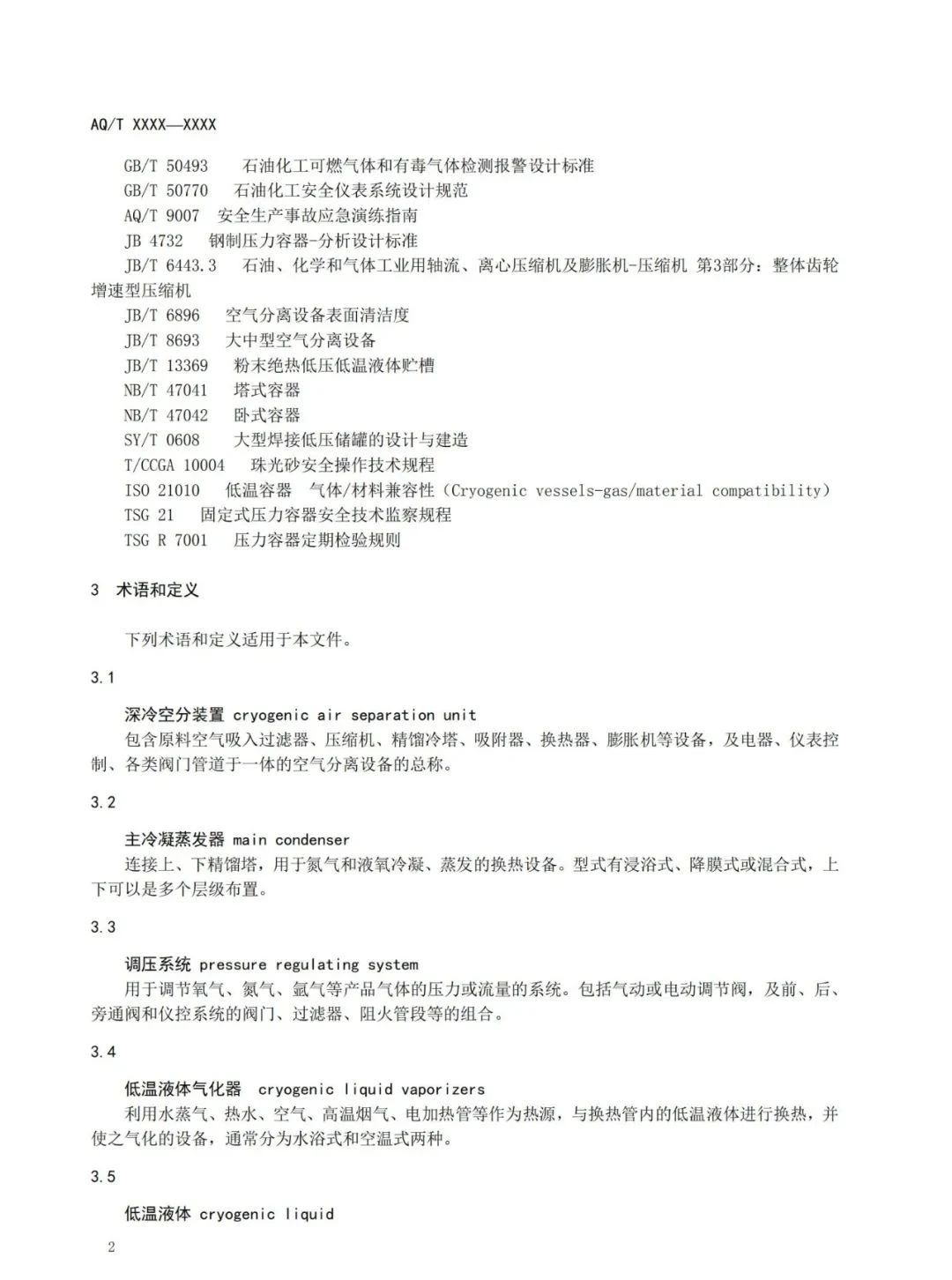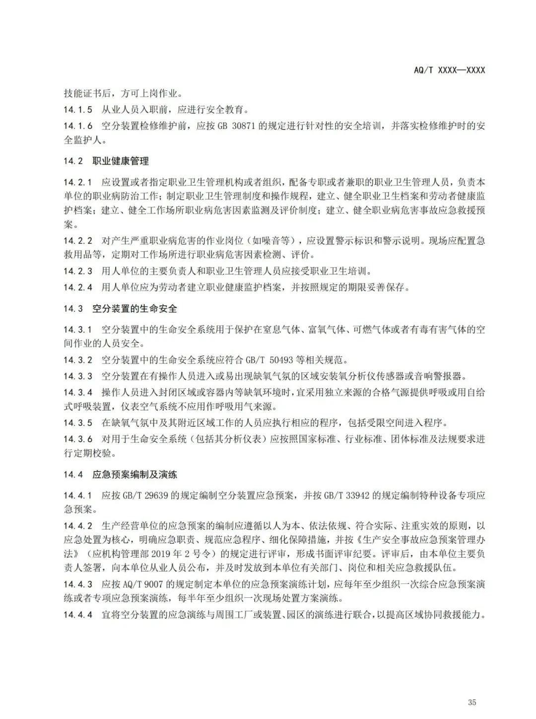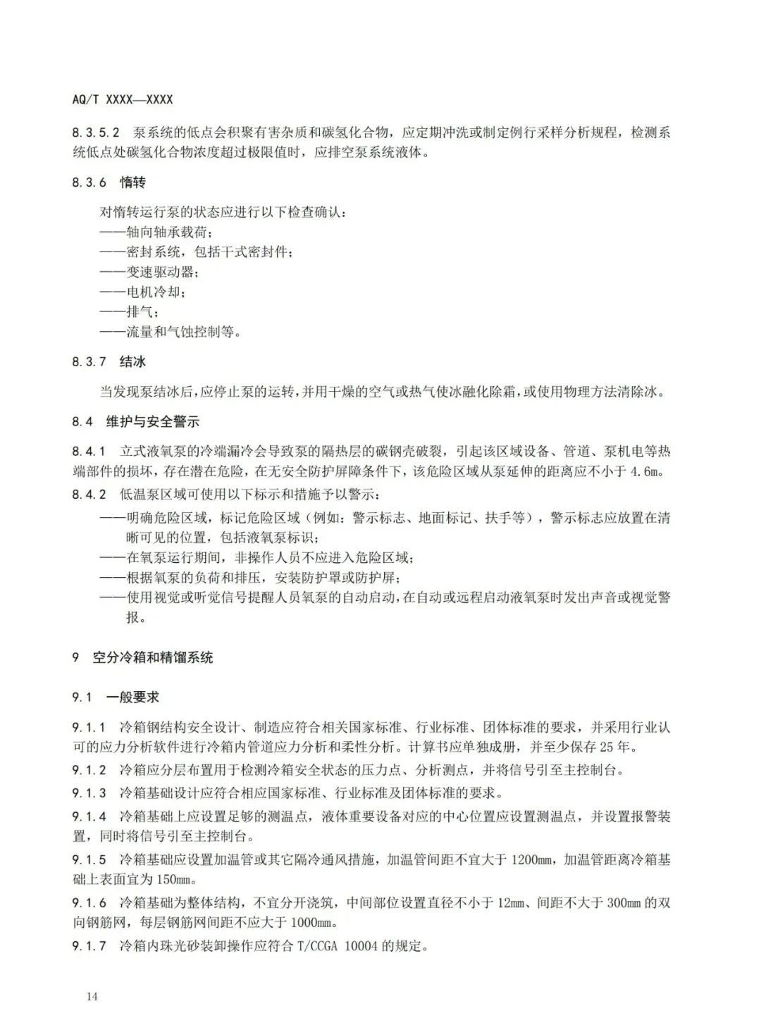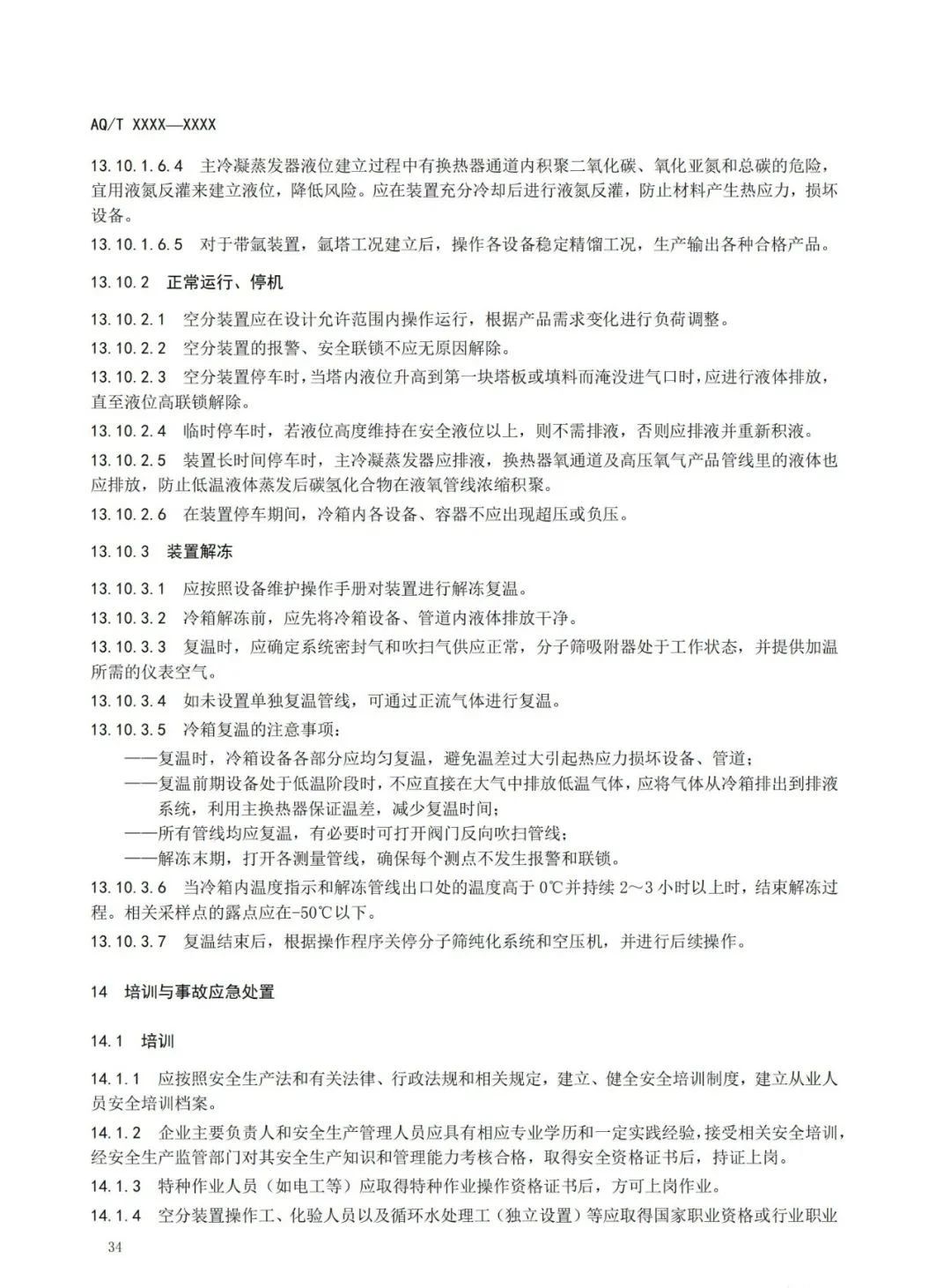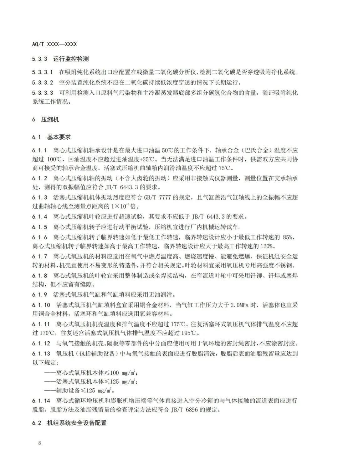 12月15日,國家應(yīng)急管理部發(fā)布了關(guān)于《深冷空分裝置安全技術(shù)規(guī)范》(征求意見稿)等兩項(xiàng)標(biāo)準(zhǔn)征求意見。此次公開征求意見時間為2020年12月10日至2021年2月10日。本標(biāo)準(zhǔn)規(guī)定了深冷空分裝置的總體布局、吸入空氣質(zhì)量控制、壓縮機(jī)、膨脹機(jī)、低溫泵、空分冷箱和精餾系統(tǒng)、產(chǎn)品儲運(yùn)、稀有氣體裝置、控制系統(tǒng)、安全操作運(yùn)行、人員管理與事故應(yīng)急處置等內(nèi)容的要求。本標(biāo)準(zhǔn)適用于以冶金、有色、化工、石化、煤化工、電子等領(lǐng)域采用深冷空分裝置制取氧、氮、氬(包含:氦、氖、氪、氙稀有氣體)等空氣產(chǎn)品的企業(yè)。附件:深冷空分裝置安全技術(shù)規(guī)范(征求意見稿)