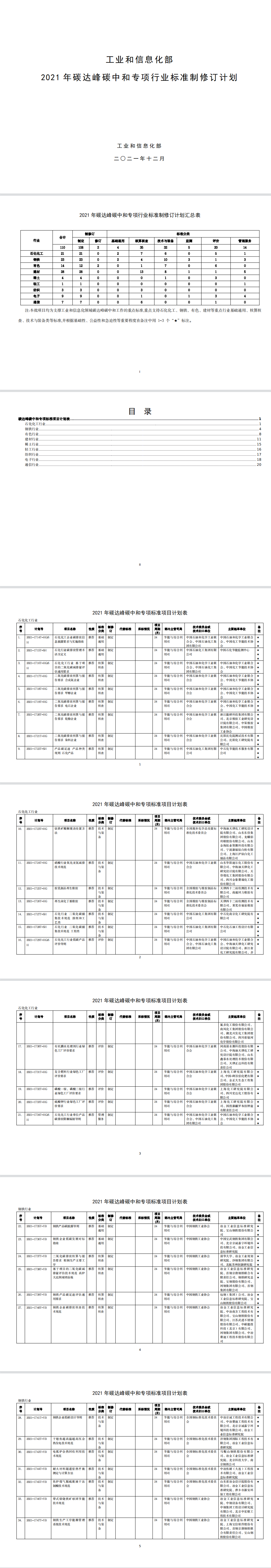 工業(yè)和信息化部辦公廳關(guān)于印發(fā)2021年碳達(dá)峰碳中和專項行業(yè)標(biāo)準(zhǔn)制修訂項目計劃的通知
