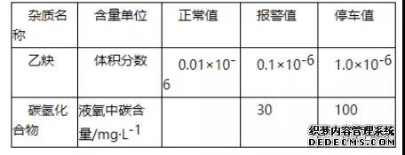 表空分裝置中乙炔和碳氫化合物的控制值