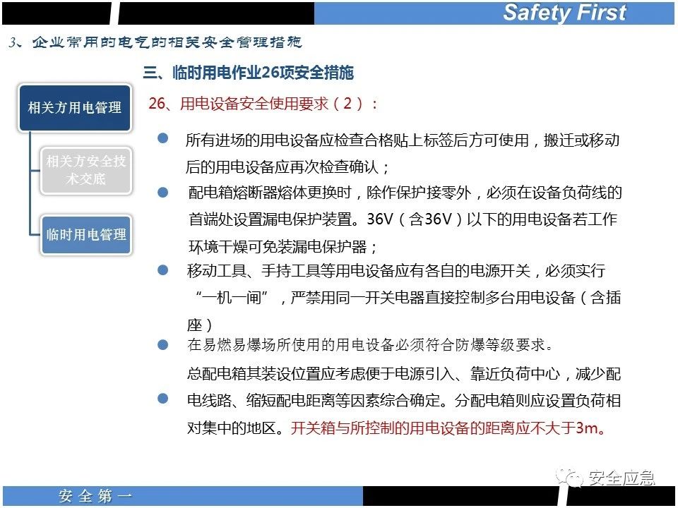 以上都是可以查閱的國家標(biāo)準的規(guī)定和要求,基于從嚴管理原則,Sam老師建議大家1.2米配電箱范圍內(nèi)都不要放置任何物品,實在有困難的降至0.8米。
