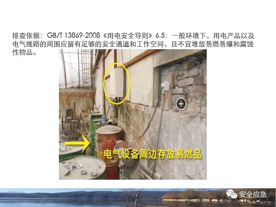 5.1.1規(guī)定一般條件下,用電產(chǎn)品的周圍應(yīng)留有足夠的安全通道和工作空間,且不應(yīng)堆放易燃、易爆和腐蝕性物品。