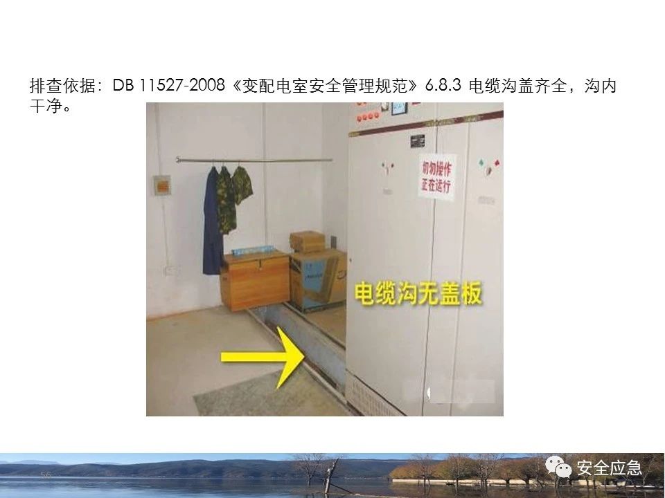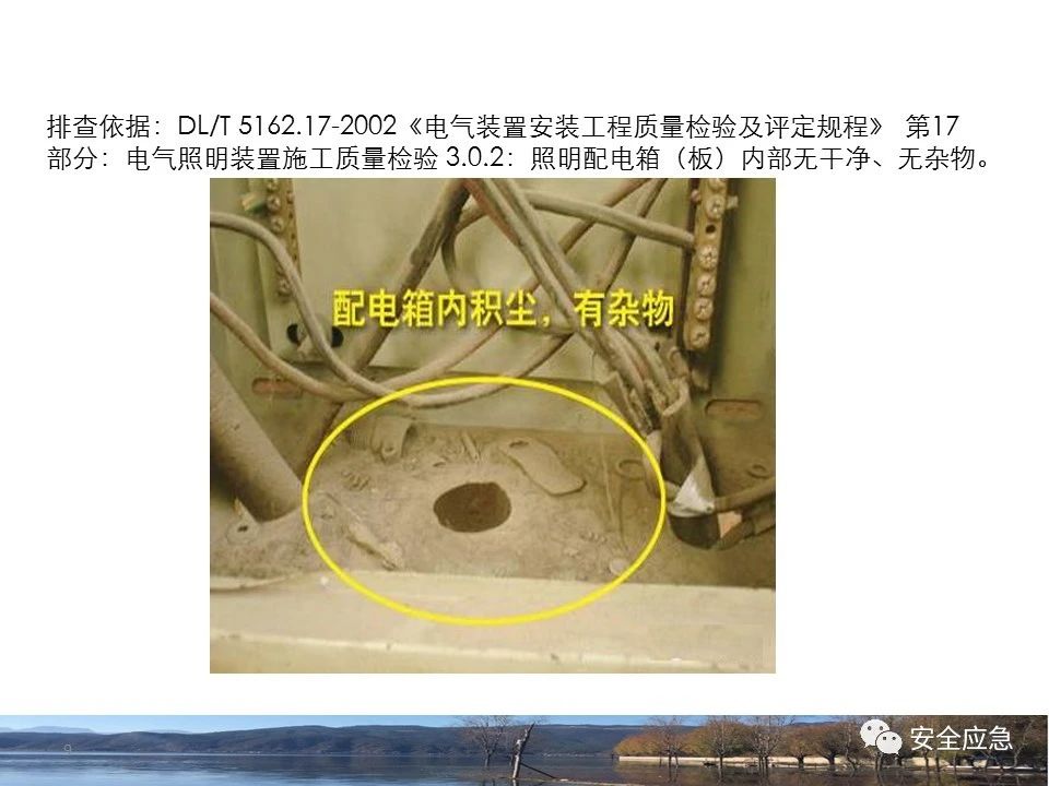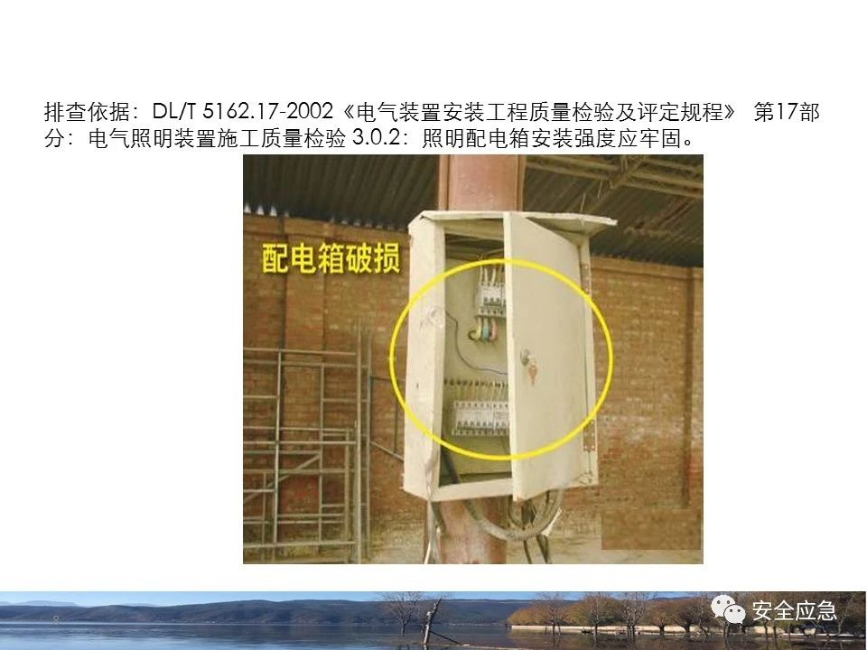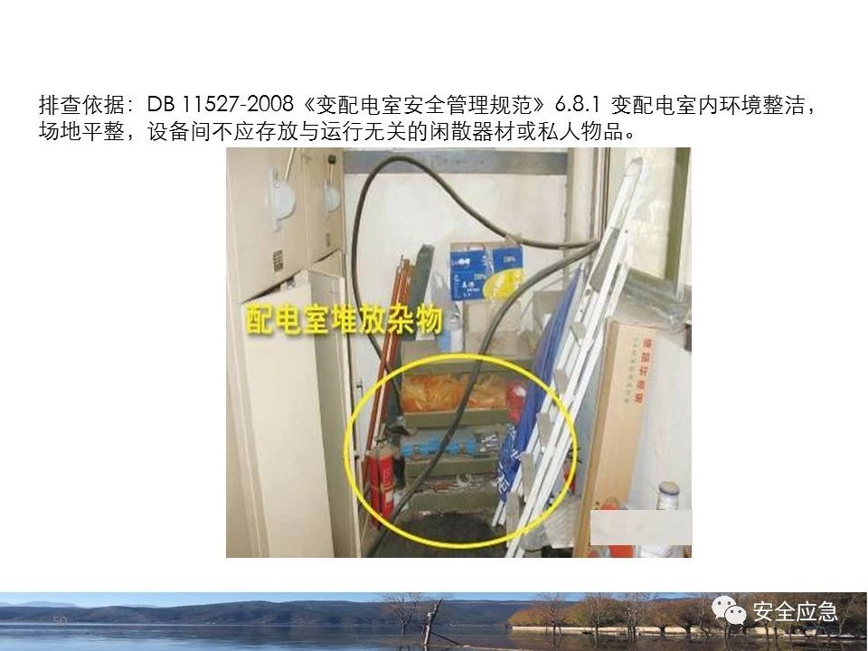 8.1.6規(guī)定配電箱、開關(guān)箱周圍應(yīng)有足夠2人同時工作的空間和通道,不得堆放任何妨礙操作、維修的物品,不得有灌木、雜草。