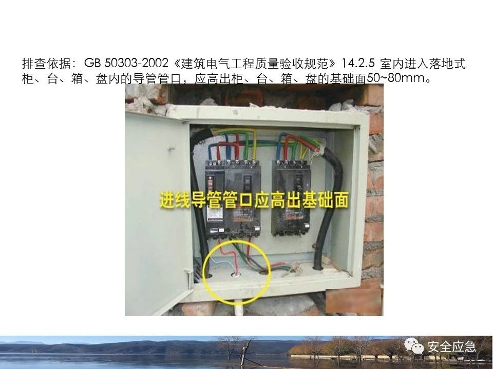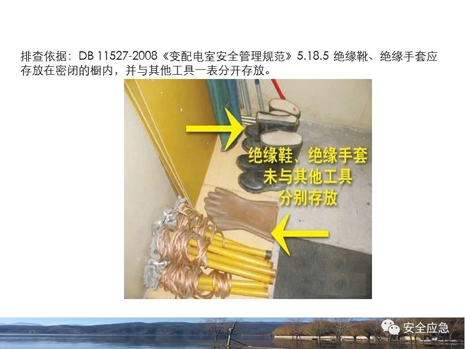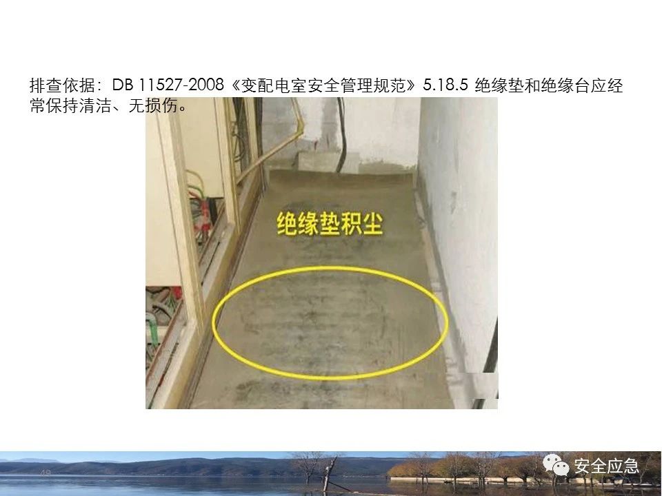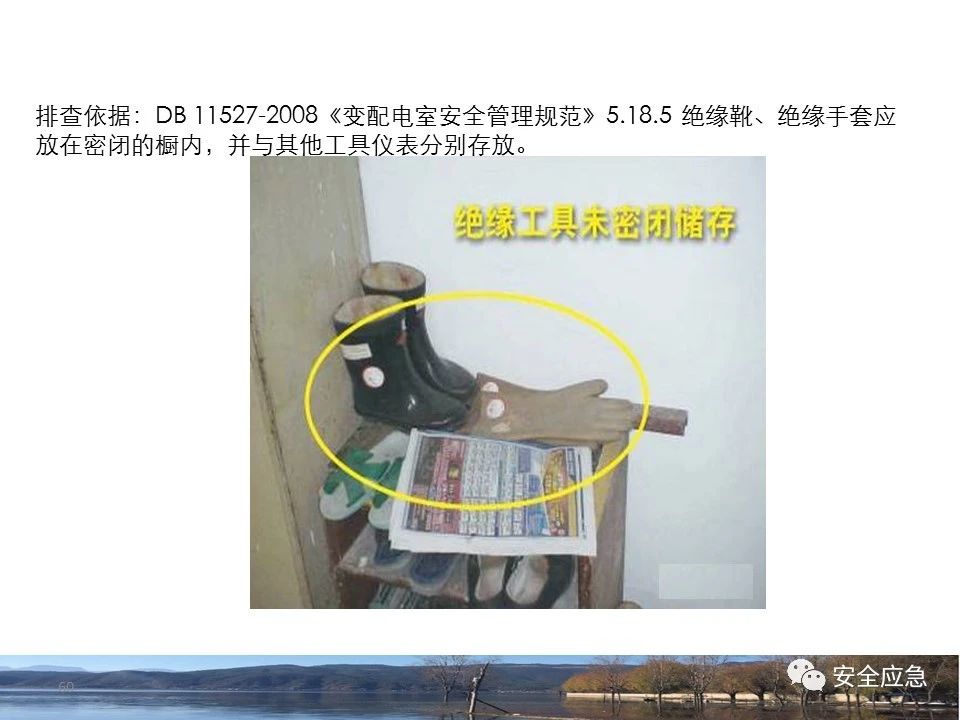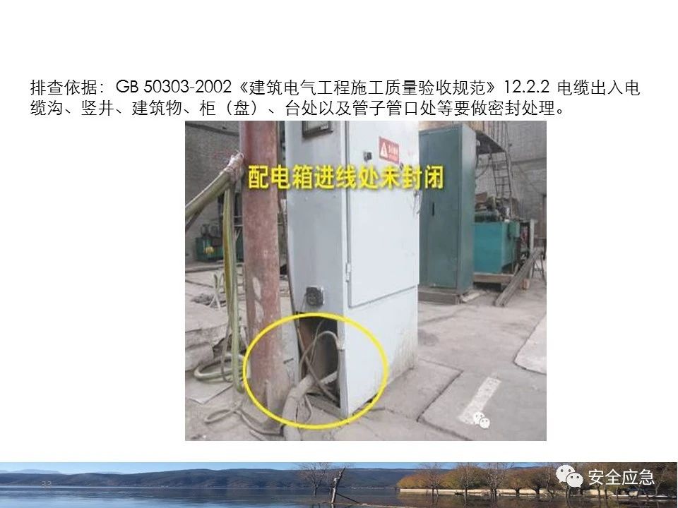 8.1.6規(guī)定配電箱、開關(guān)箱周圍應(yīng)有足夠2人同時工作的空間和通道,不得堆放任何妨礙操作、維修的物品,不得有灌木、雜草。