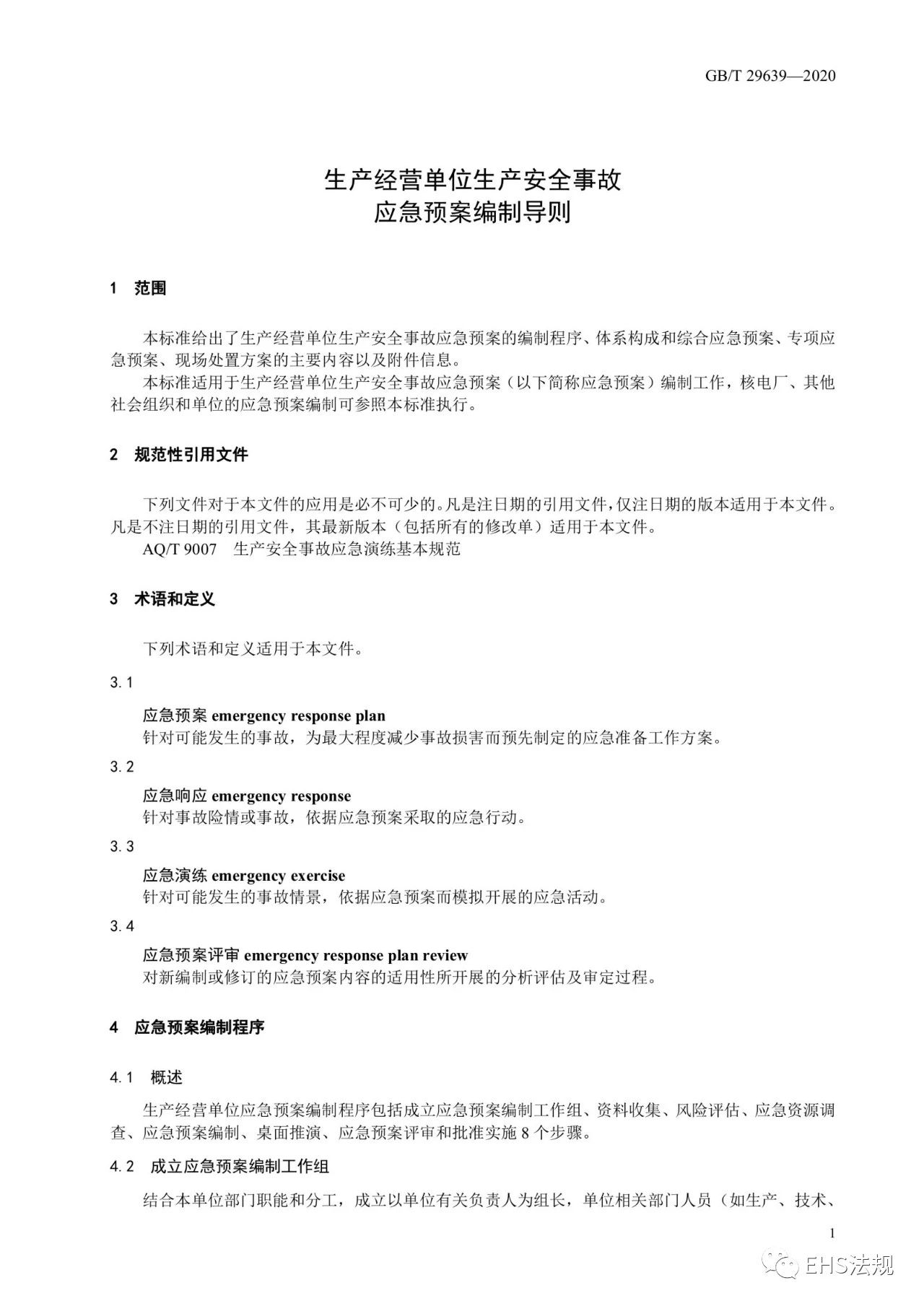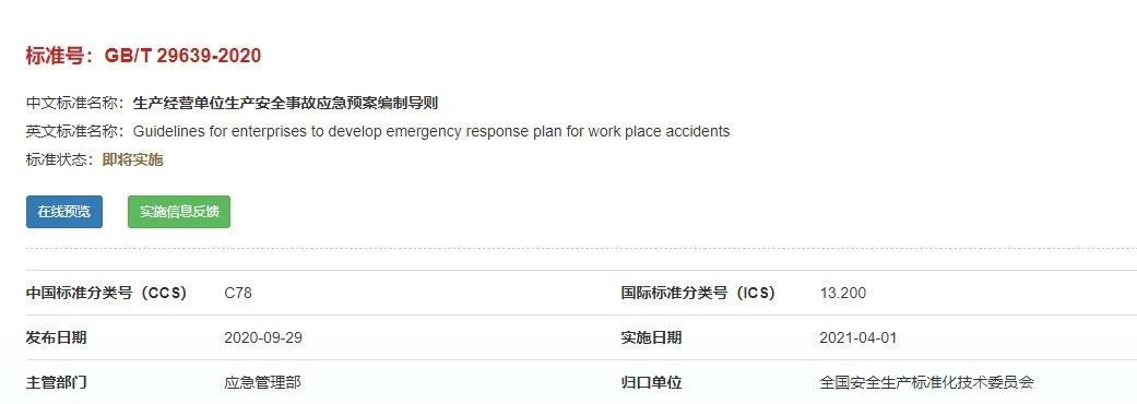 重磅!GBT29639-2020《生產(chǎn)經(jīng)營單位生產(chǎn)安全事故應急預案編制導則》發(fā)布,21年4月實施!