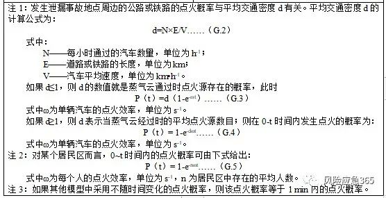 注1:對于可燃液體釋放,在到達(dá)地面前可能發(fā)生物質(zhì)的蒸發(fā)。如果蒸發(fā)氣立即點(diǎn)火將形成噴射火。噴射火的物質(zhì)量取決于蒸發(fā)氣中的物質(zhì)量。注2:在延遲點(diǎn)火時(shí),除了閃火或爆炸,也將發(fā)生池火。
