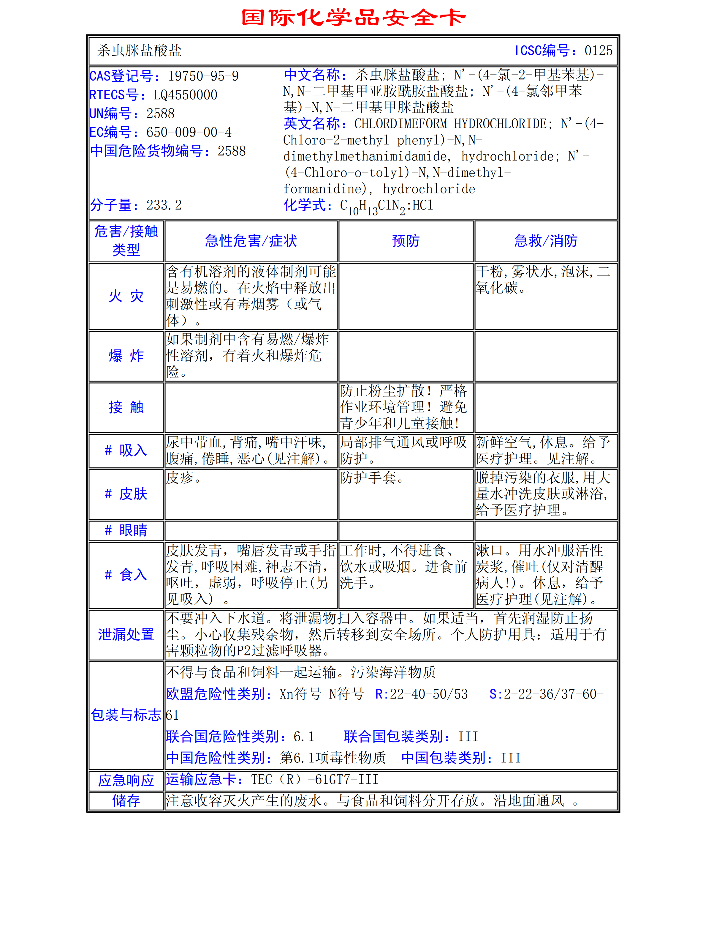 殺蟲脒鹽酸鹽MSDS