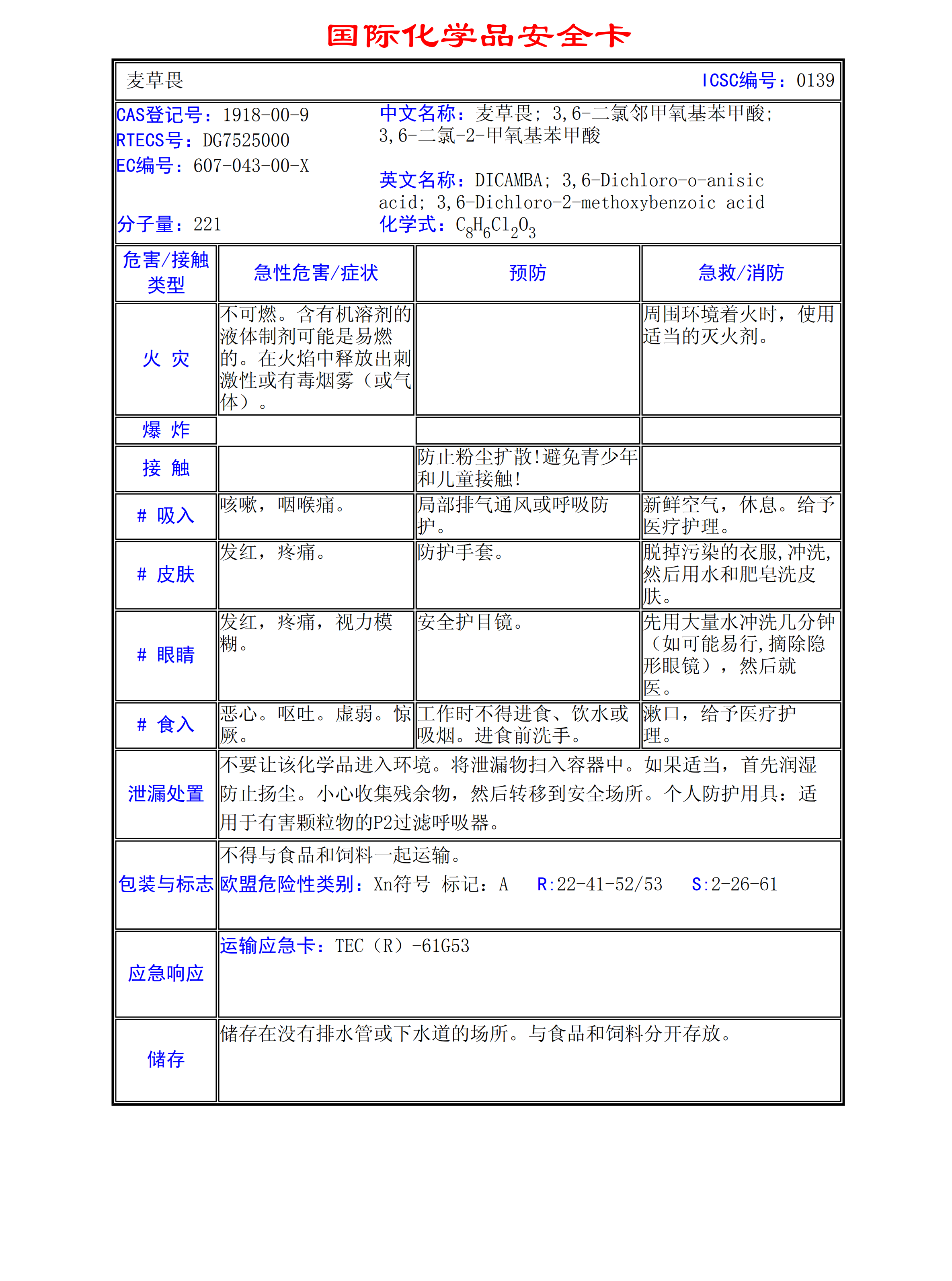 麥草畏MSDS