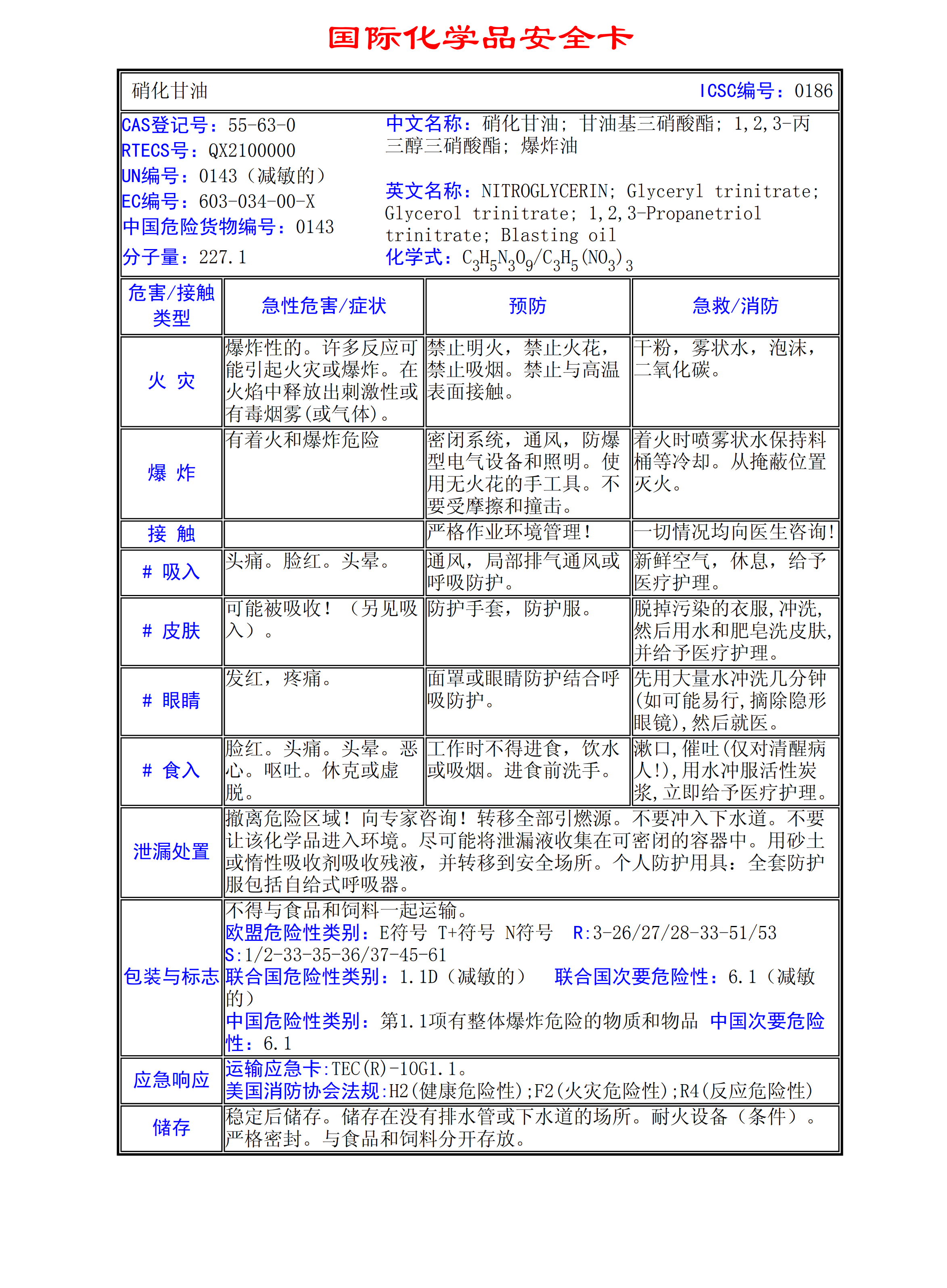 硝化甘油MSDS
