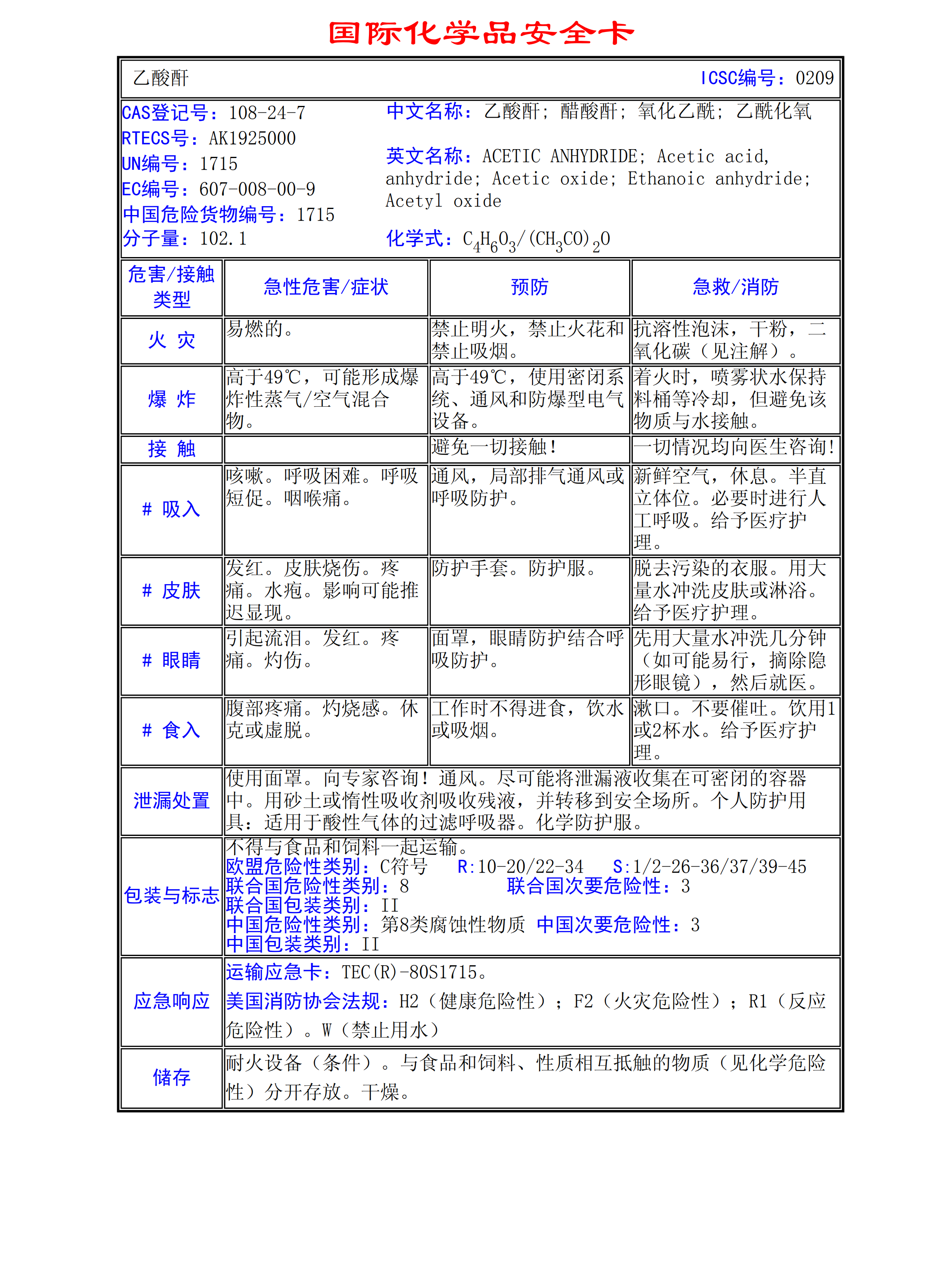 乙酸酐MSDS