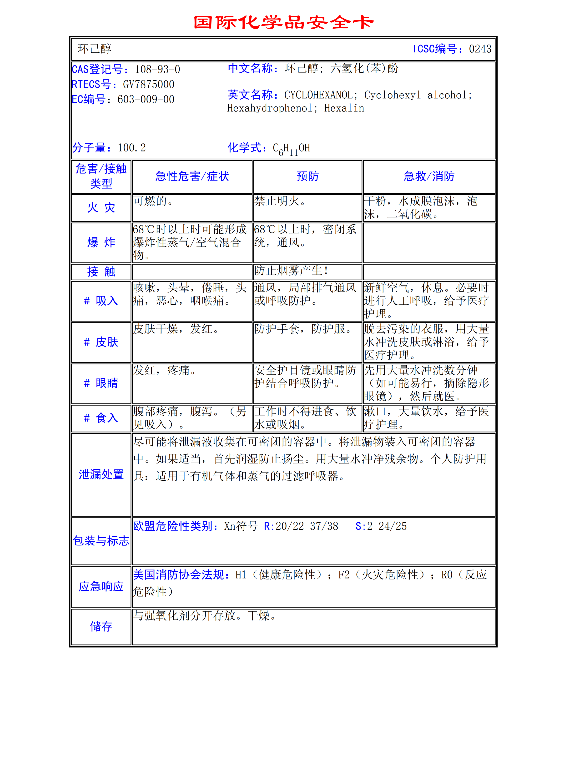 環(huán)己醇MSDS