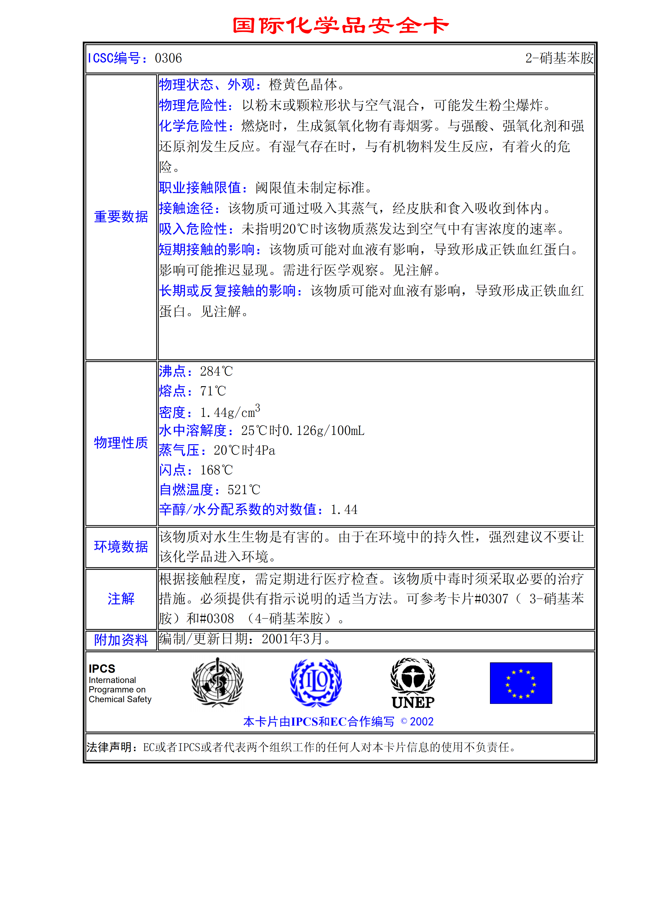 2-硝基苯胺MSDS