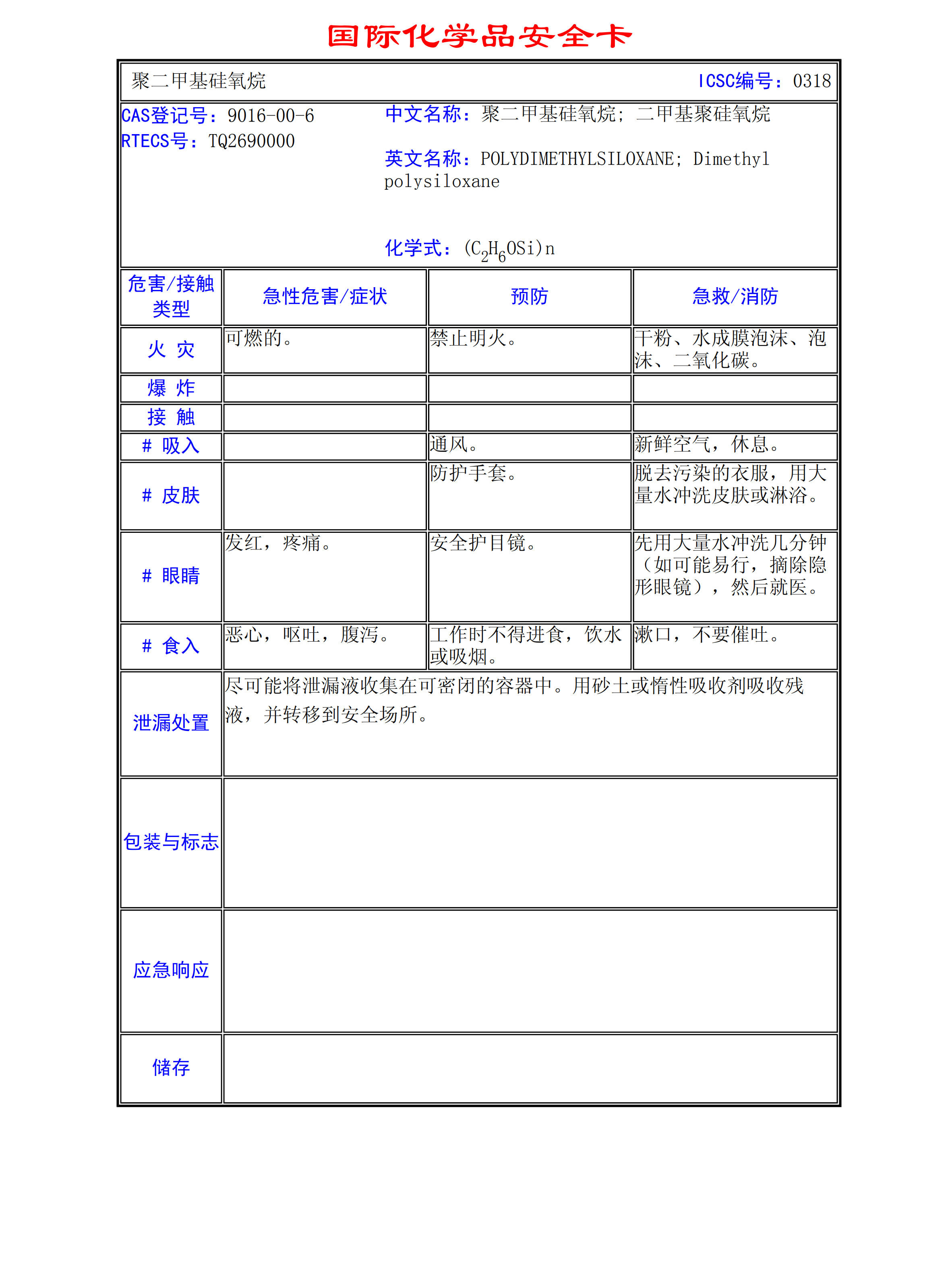 聚二甲基硅氧烷MSDS