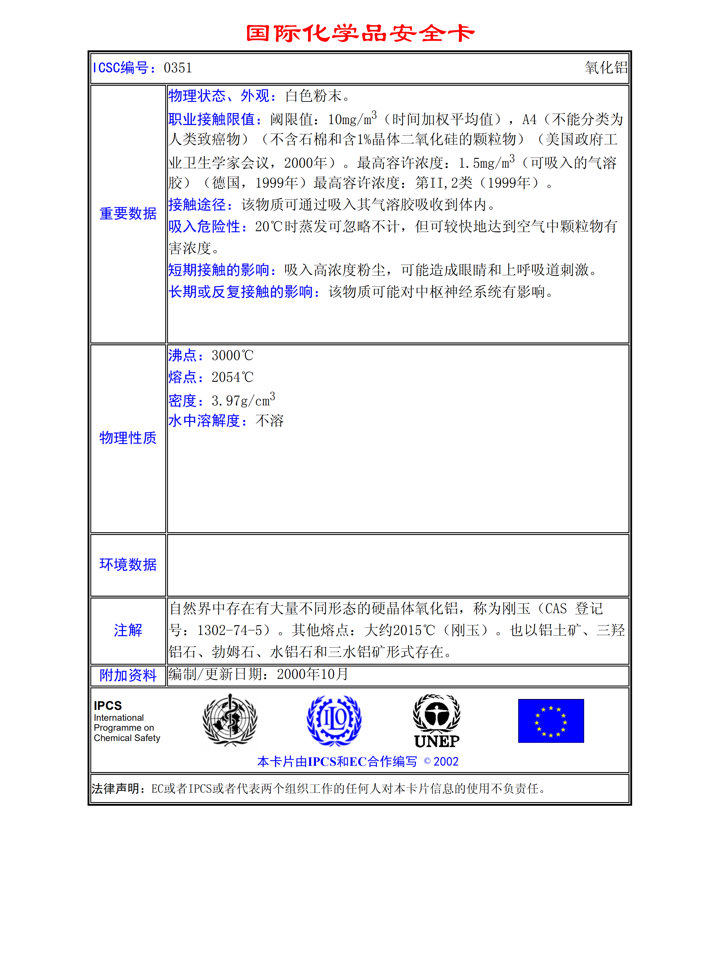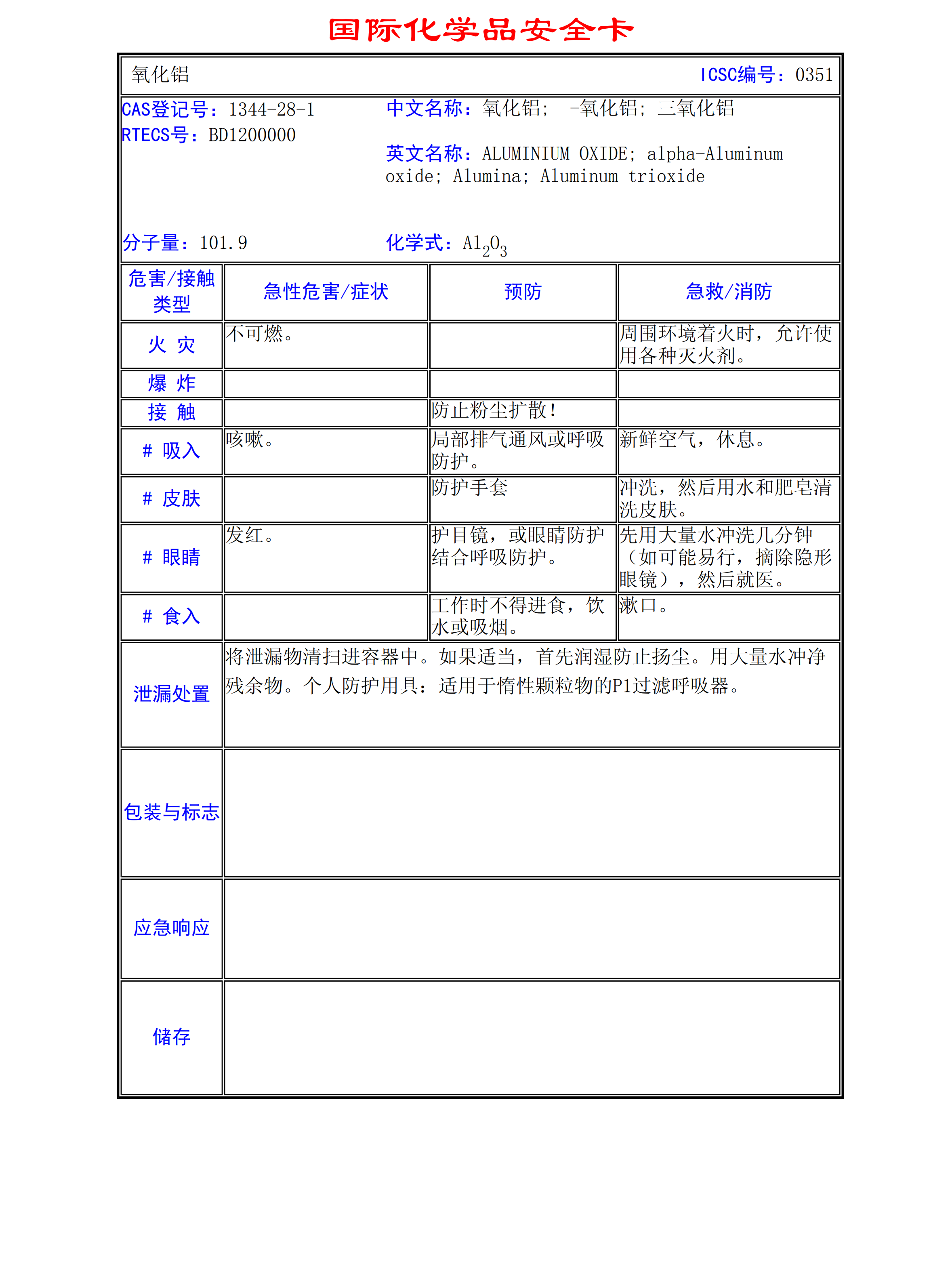 氧化鋁MSDS