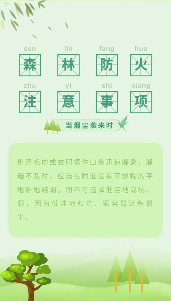 步入三月份以來,全國各地氣溫回升,物種植被干燥,火險等級逐步升高,給森林防火滅火帶來嚴(yán)峻考驗(yàn)。那么,普通群眾遇到森林火災(zāi)時,該如何最大限度的減小森林火災(zāi)對自身的危害呢?這些森林火災(zāi)基本逃生方法,一定要記住哦?。ǜ拭C省森林消防總隊平?jīng)鲋ш狇v黃陵分隊:倪騰飛)