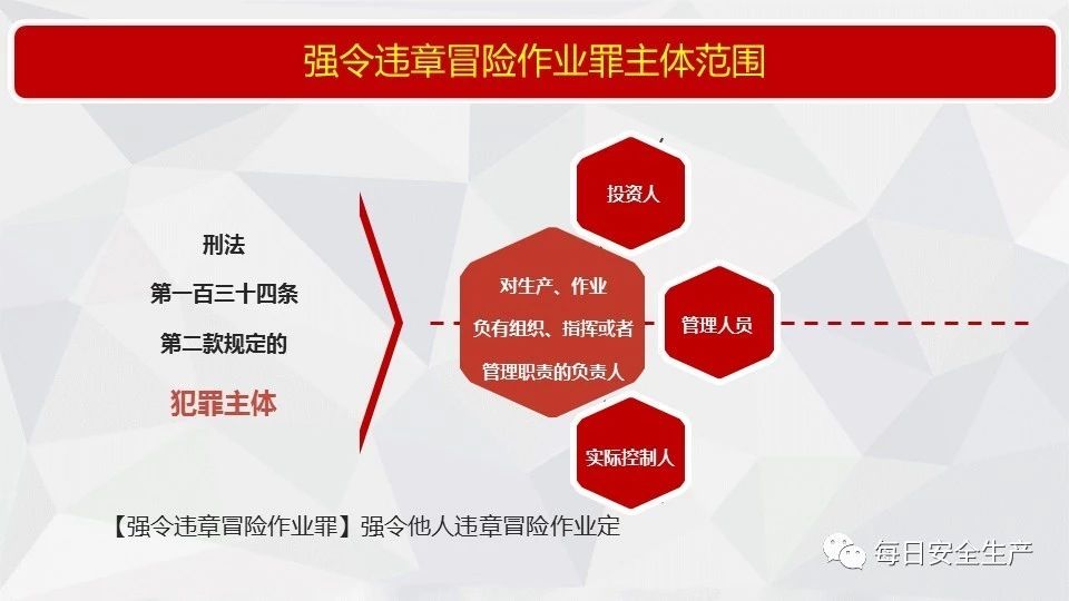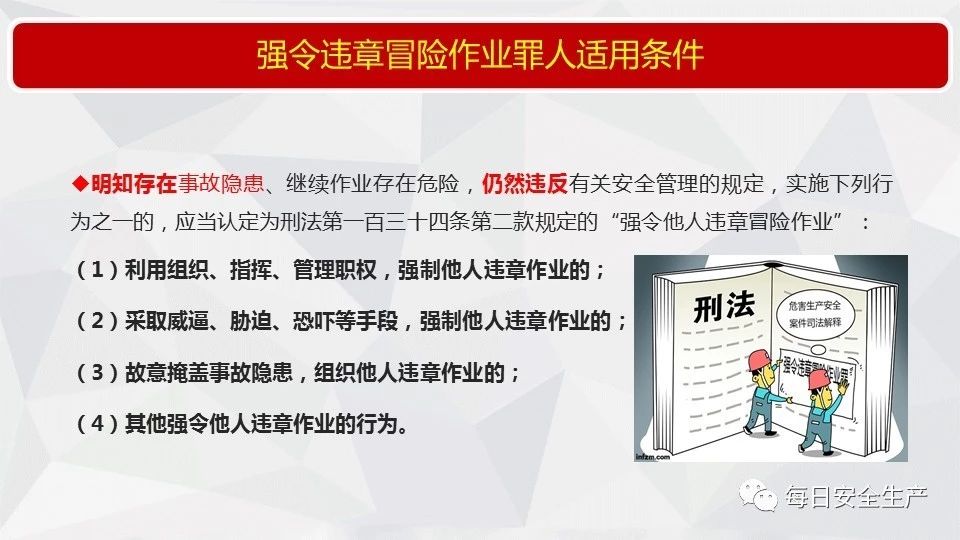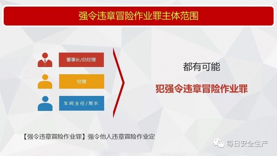作業(yè) 安全 | 進(jìn)行爆破、吊裝以及國務(wù)院安全生產(chǎn)監(jiān)督管理部門會同國務(wù)院有關(guān)部門規(guī)定的其他危險作業(yè),未安排專門人員進(jìn)行現(xiàn)場安全管理的 | 責(zé)令限期改正,可以處十萬元以下的罰款 | 責(zé)令停產(chǎn)停業(yè)整頓,并處十萬元以上二十萬元以下的罰款,對其直接負(fù)責(zé)的主管人員和其他直接責(zé)任人員處二萬元以上五萬元以下的罰款 |