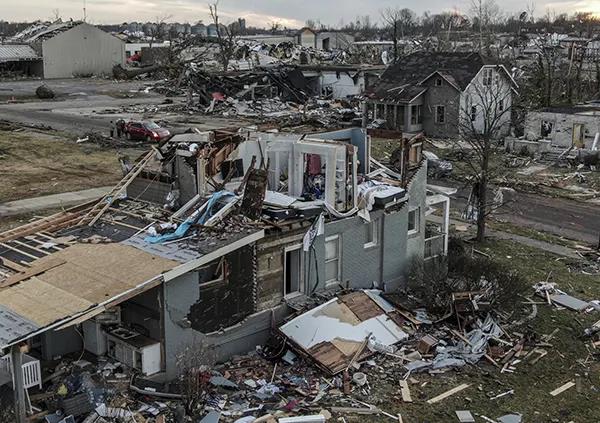 據(jù)美媒當?shù)貢r間2021年12月11日報道,美國中部的肯塔基州、伊利諾伊州、阿肯色州、密蘇里州和田納西州等6個州10日夜間遭遇至少30場龍卷風襲擊,截至目前龍卷風災(zāi)害已造成超過百人死亡,肯塔基州災(zāi)情最為嚴重。