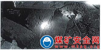 中間巷底板高出工作面刮板輸送機(jī)刮板槽1.2m左右。中間巷以里5m處砰石垛接頂未坍塌,砰石垛高2m、寬2m、長(zhǎng)5m,右側(cè)距幫約有0.5m空間。中間巷巷口有錨桿、鋼帶等支護(hù)材料,裸露兩根錨桿有摩擦磨損及切割斷裂痕跡(見(jiàn)圖3)。