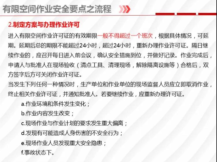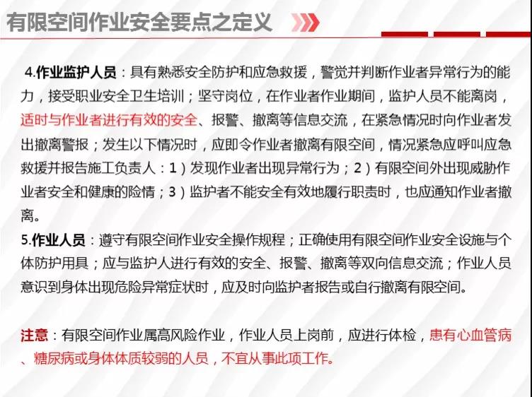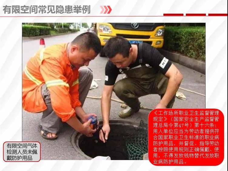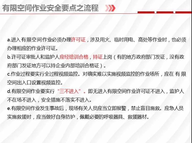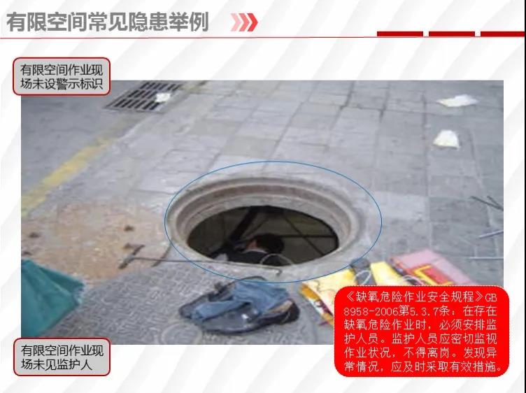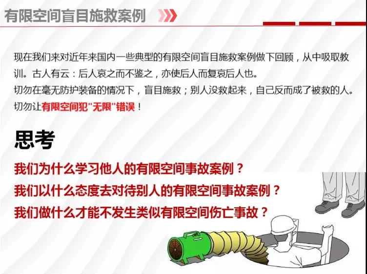 二要嚴(yán)格落實有限空間作業(yè)安全管理規(guī)定。各地各有關(guān)部門要督促企業(yè)嚴(yán)格執(zhí)行《安徽省有限空間作業(yè)安全管理與監(jiān)督暫行規(guī)定》,凡涉及到有限空間作業(yè),做到“五個必須”,即必須嚴(yán)格實行作業(yè)審批制度;必須做到“先通風(fēng)、再檢測、后作業(yè)”;必須配備個人防中毒窒息等防護(hù)裝備,設(shè)置安全警示標(biāo)識;必須對作業(yè)人員進(jìn)行安全培訓(xùn);必須制定應(yīng)急措施,現(xiàn)場配備應(yīng)急裝備,嚴(yán)禁盲目施救。