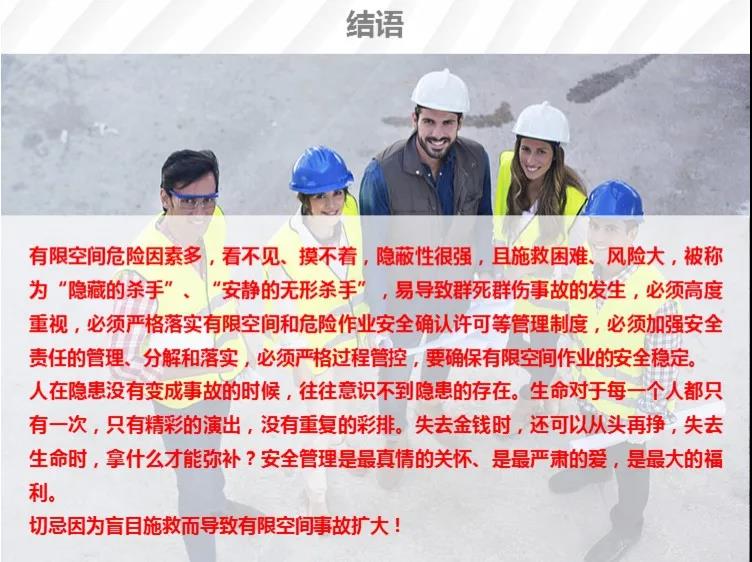 事故暴露出企業(yè)和從業(yè)人員對有限空間風(fēng)險辨識不清、試生產(chǎn)過程中安全防范措施不到位、盲目施救導(dǎo)致傷亡擴(kuò)大等問題,也暴露出監(jiān)督管理存在薄弱環(huán)節(jié)等問題。省政府領(lǐng)導(dǎo)高度重視,王清憲省長、鄧向陽常務(wù)副省長、張紅文副省長先后作出批示,要求妥處善后,查清原因,嚴(yán)格追責(zé)。為深刻吸取事故教訓(xùn),堅決遏制類似事故再次發(fā)生,現(xiàn)提出以下工作要求,請結(jié)合本地區(qū)本部門實際認(rèn)真貫徹執(zhí)行。