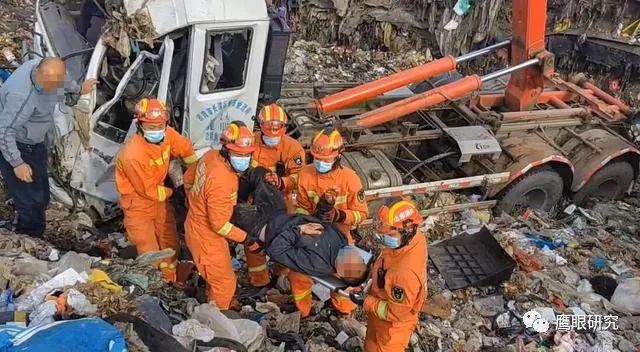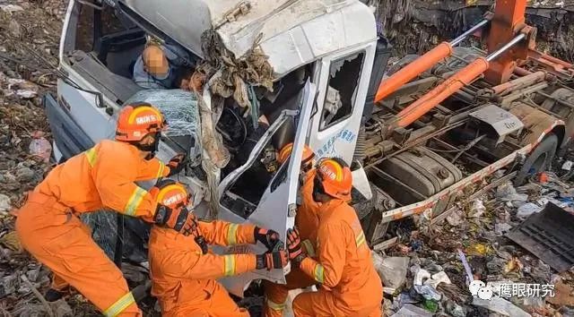 消防救援人員通過電話詢問現(xiàn)場報警人了解到,該垃圾車在卸載垃圾時抬升過高,導(dǎo)致滑入垃圾池內(nèi)側(cè)翻,有1名人員被困。