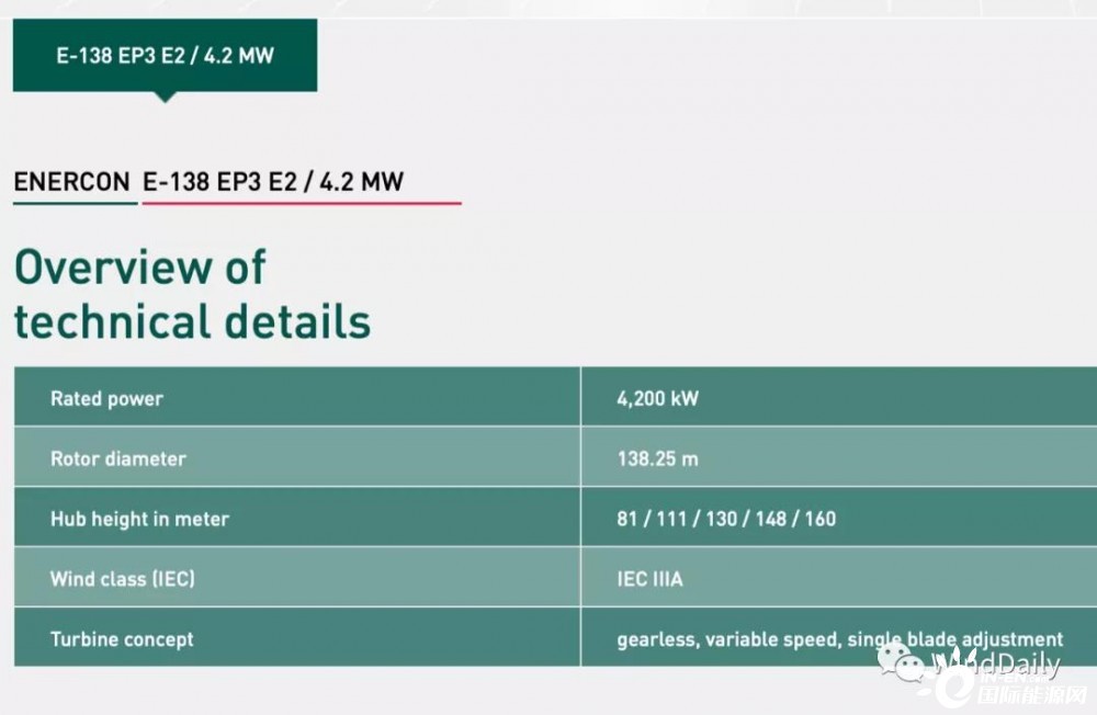Enercon E-138 EP3風電機組技術(shù)參數(shù):