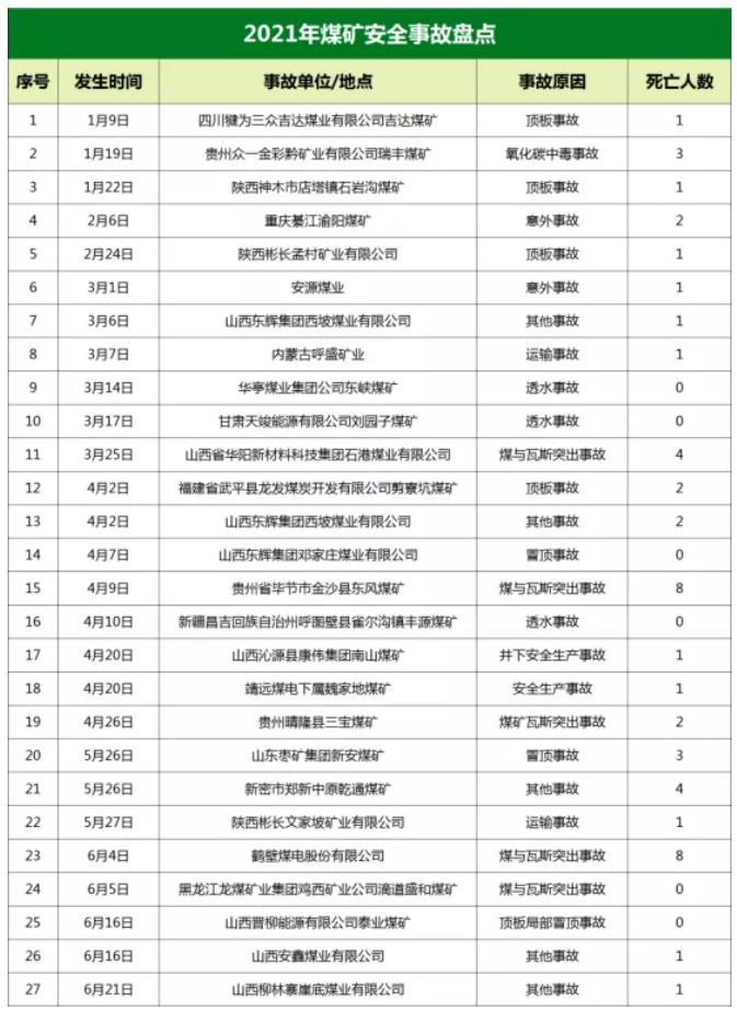 隨著國家政府的重拳出擊,煤礦安全問題取得了不錯(cuò)的成績(jī),國際能源網(wǎng)記者從2021年1月8日召開的全國礦山安全生產(chǎn)工作會(huì)議上獲悉,2020年共發(fā)生煤礦事故 122起、死亡225人,同比下降28.2%和28.8%;全年未發(fā)生重特大瓦斯事故,是新中國成立以來首次。據(jù)統(tǒng)計(jì),2021年以來,我國共發(fā)生煤礦事故27起、死亡49人。其中,山西省作為產(chǎn)煤大省,也成為了煤礦事故的重災(zāi)區(qū)。截至目前,山西省已發(fā)生8起煤礦事故。雖然煤礦事故總體數(shù)量在減少,但從能源全行業(yè)看,它依舊是事故高發(fā)的重災(zāi)區(qū)。少報(bào)、瞞報(bào)煤礦事故的情況時(shí)有發(fā)生。