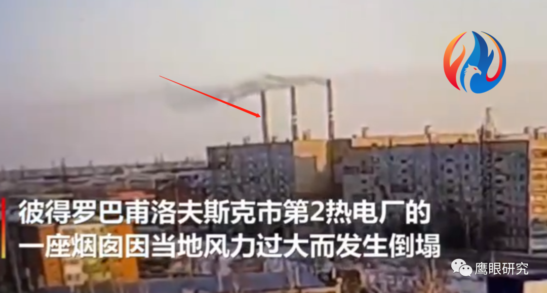 哈薩克斯坦熱電廠煙囪因大風倒塌