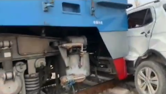 河北廊坊一輛越野車撞上火車