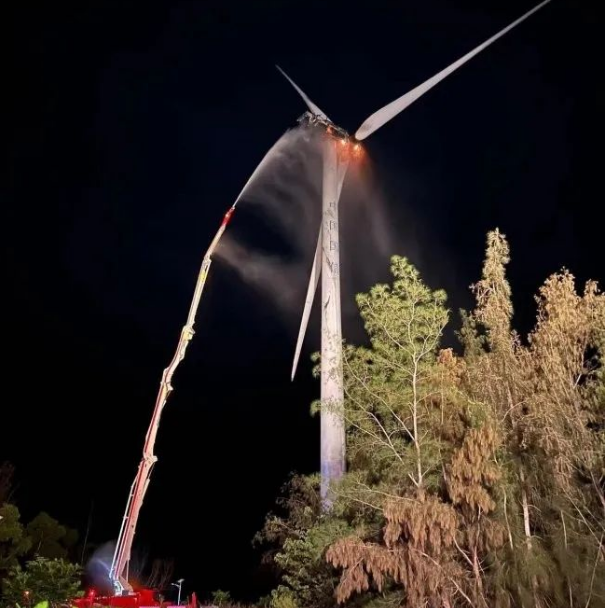 5月6日22時(shí),東方市新龍鎮(zhèn)下通天村附近風(fēng)力發(fā)電機(jī)起火。東方市消防救援支隊(duì)接到報(bào)警后,立即調(diào)派特勤消防站5輛消防車、24名消防救援人員趕赴現(xiàn)場救援,并調(diào)派富島專職隊(duì)1輛62米高噴車及4人前往現(xiàn)場增援。